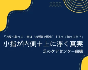 内反小趾が治らない本当の理由は「小指が内側に入る」だけでなく「上に浮く」2段階変形にあります。中足骨の開き・前重心の歩き方・浮き指・小趾筋の弱化が同時に進むと、骨格が固まりセルフケアでは戻りません。専門家が臨床データをもとに、根本改善の手順を徹底解説。